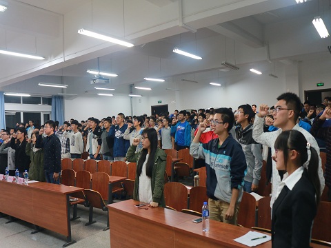 之后在青协成员的带领下,同学们右手握拳,庄严宣读帮助他人、服务社会的青年志愿者誓词,并顺利完成了志愿者注册流程。